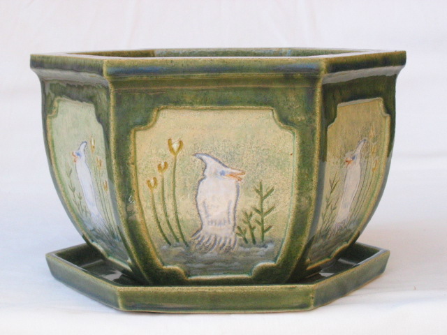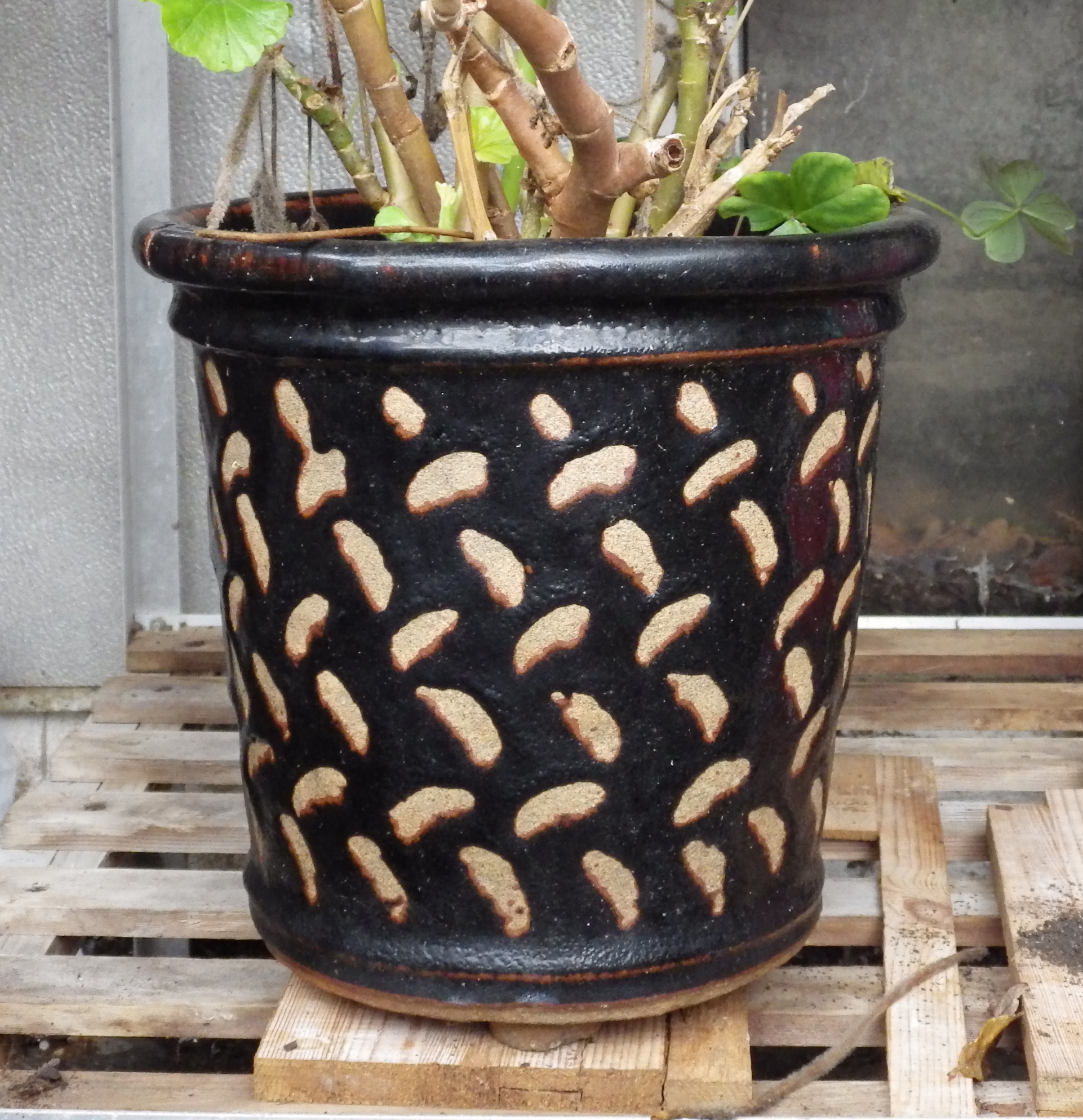 These planters were made when I was experimenting with gas firing and wax resist technique. These designs evolved into the orchid pots.